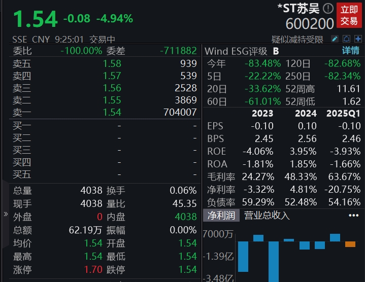 09:28 *ST苏吴跌停走出9连板,9天累计跌幅超36%。