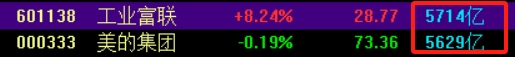 13:40 工业富联午后涨幅扩大超8%,股价创历史新高,总市值超5700亿元,超越美的集团暂列A股总市值排行第21位。
