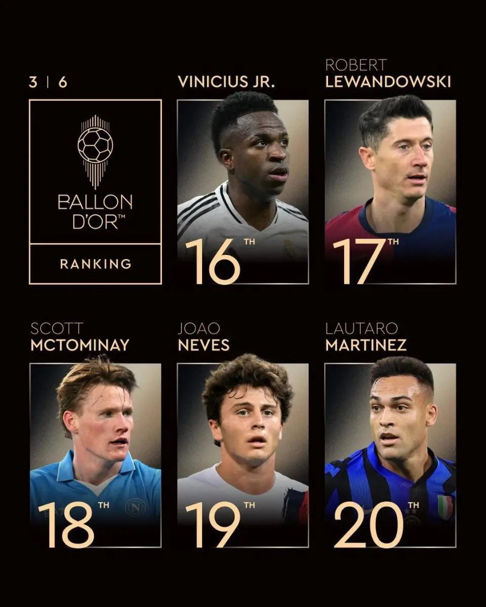 作为上赛季的欧冠冠军和“三冠王”得主,大巴黎5人入围前10名,可谓实至名归。而作为去年的第2名维尼修斯,则仅排第16位,姆巴佩则列第7位。