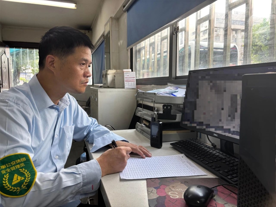 21:20,焦急的失主夫妇赶到协和路甘溪路终点站求助。安管员陆海璋见状立刻上前安抚:“您别急,刚收到消息,已经有驾驶员捡到包了!”随后,他仔细询问了夫妇俩的乘车时间、上下车地点及包包外观特征,同时通过“巴士通”系统调取对应车辆的行车记录与车内监控,逐帧核对确认失物位置。得知郭洪波驾驶的车辆约20分钟后到站,陆海璋一边陪失主聊天,进一步核实包内物品细节,一边舒缓他们的焦虑情绪。